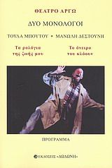 Τον βλέπω... χωρίς να ψάξω, να παλεύει πάνω στη σκηνή, μέσα στο πέλαγος της μοίρας ο Μανώλης Δεστούνης. Στο πρώτο μονόπρακτο, "Τα ρολόγια της ζωής μου", να κολυμπάει μέσα στο κενό του χρόνου, όπου, όταν σ' αγκαλιάσει η ψύχρα του από παντού -και προσμετράται μόνο με το εφιαλτικό τικ-τακ του ρολογιού- τότε, μπερδεύεται το χθες με το θολό το σήμερα και γίνεται ένα· χωρίς αύριο. Στο δεύτερο μονόπρακτο, "Το όνειρο του κλόουν", να αφήνεται!... όπου τον παρασύρει η ψυχή του... ένας κλόουν... ένας Δον Κιχώτης που κονταροχτυπιέται στο απέραντο πέλαγος το κοινωνικό, το ματωμένο, το ακόμα πιο άγριο -αυτό είναι το άδικο- το πονεμένο... και όλα αυτά με ψυχισμό, που μας κάνει... να μπορούμε να γελάμε.