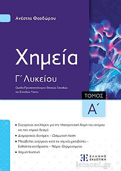 Το νέο εκπαιδευτικό βιβλίο Χημεία Γ΄ Λυκείου – Ομάδα Προσανατολισμού Θετικών Σπουδών και Σπουδών Υγείας, Α΄ τόμος περιέχει τα κεφάλαια: 1. Σύγχρονες αντιλήψεις για την ηλεκτρονιακή δομή του ατόμου και τον χημικό δεσμό, 2. Διαμοριακές δυνάμεις – Ωσμωτική πίεση, 3. Μεταβολές ενέργειας κατά τις χημικές μεταβολές – Ενθαλπία αντίδρασης – Νόμοι Θερμοχημείας και 4. Χημική Κινητική.