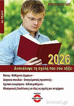 Είσαι βέβαιος πως η σχολή που έχεις επιλέξει είναι η σωστή; Γνωρίζεις τα μαθήματα του κάθε εξαμήνου, ώστε να ξέρεις αν αυτά ανταποκρίνονται στις δεξιότητες και στις επιθυμίες σου; Ποιες είναι οι πιθανές επαγγελματικές προοπτικές αλλά και τα συνδεόμενα με την κάθε σχολή επαγγέλματα; Απαντήσεις σε όλα αυτά τα ερωτήματα -καθώς και σε άλλα πολλά (βάσεις προηγούμενου έτους, ηλεκτρονικές διευθύνσεις κ.ά.)- παρέχουν τα 4 βιβλία (ένα για κάθε πεδίο) της σειράς ΑΝΑΚΑΛΥΨΕ ΤΗ ΣΧΟΛΗ ΠΟΥ ΣΟΥ ΑΞΙΖΕΙ αποτελώντας αναμφισβήτητα την κορυφαία σειρά επαγγελματικού προσανατολισμού στην Ελλάδα!