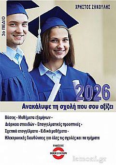 Είσαι βέβαιος πως η σχολή που έχεις επιλέξει είναι η σωστή; Γνωρίζεις τα μαθήματα του κάθε εξαμήνου, ώστε να ξέρεις αν αυτά ανταποκρίνονται στις δεξιότητες και στις επιθυμίες σου; Ποιες είναι οι πιθανές επαγγελματικές προοπτικές αλλά και τα συνδεόμενα με την κάθε σχολή επαγγέλματα; Απαντήσεις σε όλα αυτά τα ερωτήματα -καθώς και σε άλλα πολλά (βάσεις προηγούμενου έτους, ηλεκτρονικές διευθύνσεις κ.ά.)- παρέχουν τα 4 βιβλία (ένα για κάθε πεδίο) της σειράς ΑΝΑΚΑΛΥΨΕ ΤΗ ΣΧΟΛΗ ΠΟΥ ΣΟΥ ΑΞΙΖΕΙ αποτελώντας αναμφισβήτητα την κορυφαία σειρά επαγγελματικού προσανατολισμού στην Ελλάδα!