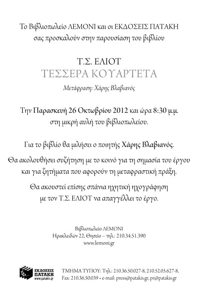 Τ.Σ Ελιοτ – Τα τέσσερα κουαρτέτα