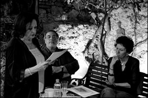 Γιώτα Αργυροπούλου - Χλόη Κουτσουμπέλη - Όλγα Ντέλλα , Διαβάζουν ποιήματα τους στην μικρή αυλή του Βιβλιοπωλείου