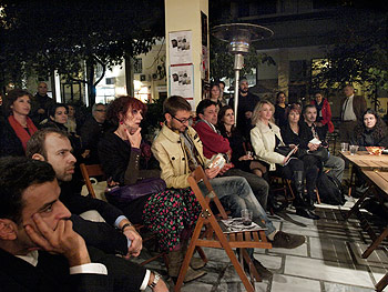 Γιώτα Αργυροπούλου - Χλόη Κουτσουμπέλη - Όλγα Ντέλλα , Διαβάζουν ποιήματα τους στην μικρή αυλή του Βιβλιοπωλείου