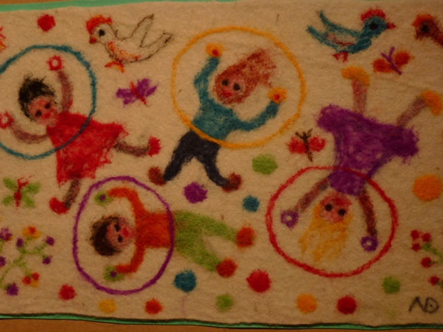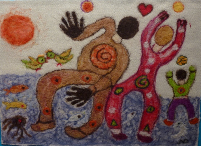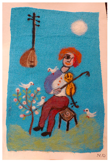 χρησιμοποιεί την μέθοδο Felt με βελόνα. Σμιλεύει τις ίνες του μαλλιού, το οποίο πριν έχει βάψει με φυσικά χρώματα, δημιουργώντας πίνακες χρωματοθεραπείας. Felt, είναι η αρχαιότερη γνωστή μορφή μη υφασμένου υφάσματος και η πραγματική καταγωγή της είναι άγνωστη.