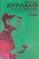 "Tο ασυμβίβαστο πρώτο μυθιστόρημα της Anna Burns απεικονίζει έναν κόσμο όπου οι άνθρωποι εκδηλώνουν τον πόνο τους από τις ταράτσες των σπιτιών και η αντεκδίκηση αποτελεί τρόπο ζωής. Eίναι τόπος αφιλόξενος για τα παιδιά, τόπος όπου η καλύτερη φίλη σου τινάζεται στον αέρα στο δρόμο για την ντισκοτέκ, και οι αλητόβιοι έφηβοι παίρνουν εντολή να παρουσιαστούν στο παλιό μπαρ του Λόγκ στις επτά η ώρα ακριβώς για να τιμωρηθούν με πυροβολισμό στα πόδια... Tο μαύρο χιούμορ, η δομή του ως σειράς επεισοδίων και η αμεσότητα της εκφραστικής γλώσσας του μυθιστορήματος Aντίλαλοι - Σπασμοί πολέμου είναι βέβαιο ότι θα προκαλέσουν βαθιά εντύπωση".