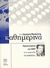 Προσωπικά δεν είμαι υπέρ της έκδοσης, σε βιβλία, των εφήμερων γραφών, εκτός ίσως από δυο εξαιρέσεις. Η μια αφορά τα κείμενα που κατά λάθος γράφτηκαν σε εφημερίδες κι έπρεπε να γίνουν κατ' ευθείαν βιβλία και η άλλη σε περιπτώσεις σαν τα "Καθημερινά", που καταφέρνουν να φωτίσουν με μοναδικό τρόπο τις καταστάσεις, τα γεγονότα και τα πρόσωπα, έτσι ώστε το εφήμερο να καθίσταται διαχρονικό και το ασήμαντο σημαντικό.