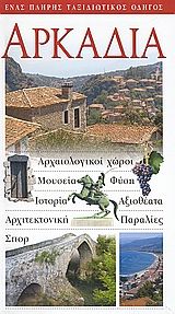 Ο οδηγός περιλαμβάνει τις ενότητες: "Μάθετε για την Αρκαδία", "Περιήγηση στην Αρκαδία", "Δραστηριότητες στην Αρκαδία" και "Χρήσιμα για το ταξίδι".