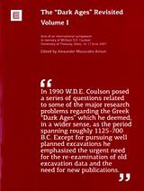 "In 1990 W.D.E. Coulson posed a series of questions related to some of the major research problems regarding the Greek "Dark Ages" which he deemed, in a wider sense, as the period spanning roughly 1125-700 B.C. Except for pursuing well planned excavations he emphasized the urgent need for the re-examination of old excavation data and the need for new publications".