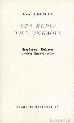 [...] Με συγκίνησε πάραυτα το βάθος και οι απροσδόκητες ροές της μνήμης στο τελευταίο αυτό βιβλίο της Εύας Ρούνεφελτ, ο τρόπος με τον οποίο η λυρική γραφή ανοίγει κλουβιά και απελευθερώνει τα πουλιά του βιωμένου χρόνου και της συσσωρευμένης συνείδησης, που αναιρεί τα όρια ανάμεσα σε παρελθόν, παρόν και μέλλον. Ήδη ο σουηδικός τίτλος φέρει αυτή την απελευθερωτική ρευστότητα. Μπορεί να αποδοθεί είτε ως Κλουβί της μνήμης (ή Το κλουβί με τις μνήμες ή Κλουβί με μνήμες) είτε ως Στα χέρια της μνήμης (και πιο πιστά: αυτή ή αυτός ή αυτό που φέρεται, που κομίζεται από τη μνήμη). Ρώτησα την Εύα Ρούνεφελτ τι θα διάλεγε η ίδια. «Λαμβάνοντας υπόψη τον τρόπο που σκέφτεσαι εσύ και με τον οποίο ερμηνεύεις και την ποίησή μου», μου είπε δίχως δεύτερη σκέψη, «θα διάλεγα την καταφατική εκδοχή. Όχι αυτή που παραπέμπει σε εγκλωβισμό.»