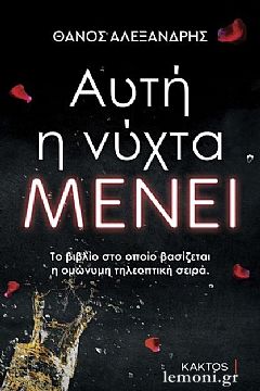 Το εμβληματικό βιβλίο του Θάνου Αλεξανδρή "Αυτή η νύχτα μένει", στο οποίο βασίζεται η νέα τηλεοπτική σειρά του ALPHA, κυκλοφορεί από τις Εκδόσεις ΚΑΚΤΟΣ.