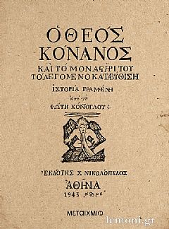 Tο 1943, μέσα στην Κατοχή, κυκλοφόρησε από τις εκδόσεις Σ. Νικολοπούλου το διήγημα O θεός Κόνανος και το μοναστήρι του το λεγόμενο καταβύθιση. Ο παραδοσιακός και συνάμα σύγχρονος Φώτης Κόντογλου, σε αυτό το σκληρό κείμενό του καταφεύγει στη γλώσσα της παραβολής για να στείλει, κατά πολλούς, το δικό του αντιφασιστικό μήνυμα στον αναγνώστη και να καταγγείλει με τόλμη τη βαναυσότητα εκείνης της εποχής, αλλά και την ανθρώπινη ματαιοδοξία.