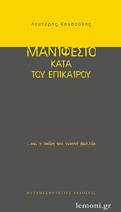 Στο σύντομο αυτό βιβλίο-μανιφέστο ο Λευτέρης Κουσούλης εναντιώνεται στην τάση της εποχής να χτίζει όλη την δημόσια συζήτηση γύρω από το επίκαιρο. Γι αυτόν το επίκαιρο , το στιγμιαίο αποτελεί μια παγίδευση που περίτεχνα περιορίζει την δημόσια συζήτηση. Το προσκήνιο κατακλύζεται από το επίκαιρο και χειροκροτείται ως αιώνιο, «κερδίζοντας προσωρινά την μάχη με τον χρόνο».