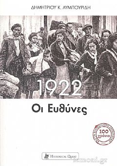 Ο Δημήτριος Λυμπουρίδης, γόνος προσφύγων ο ίδιος, μετά από 16ετή περίοδο εντατικής έρευνας και μελέτης, μέσα από το βιβλίο «1922: Οι Ευθύνες» παραθέτει τα γεγονότα και καταθέτει με τόλμη τη δική του ερμηνεία για τη Μικρασιατική Καταστροφή. Η ετυμηγορία του ως ιστορικός ερευνητής είναι αυστηρή μεν, ακριβοδίκαιη δε. Κάποιος μπορεί να μη συμφωνήσει μαζί της. Δεν μπορεί όμως να διαφωνήσει με τα γεγονότα στα οποία την στηρίζει. Αυτά μιλούν από μόνα τους.