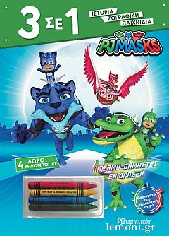 "Ένα ξεχωριστό βιβλίο που συνδυάζει μια ιστορία με τους αγαπημένους σου Πιτζαμο-ήρωες, πολλές σελίδες για χρωμάτισμα και φανταστικά παιχνίδια, που υπόσχονται ατελείωτες ώρες διασκέδασης!
