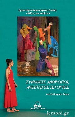 Ο συλλογικός τόμος «Συνήθεις άνθρωποι, ανείπωτες ιστορίες» περιλαμβάνει πρωτότυπες μικρές ιστορίες, διηγήματα και μονόλογους, όπου ο κεντρικός ήρωας, «ο συνήθης άνθρωπος», έχει να παλέψει από τη μια, με τον ίδιο του τον εαυτό και από την άλλη, με ένα σαθρό οικογενειακό ή κοινωνικό περιβάλλον το οποίο, συχνά, τον συνθλίβει. Τα τριάντα ένα κείμενα της συλλογής, γραμμένα από δέκα έξι νέους ταλαντούχους συγγραφείς, μαθητές των εργαστήριων Δημιουργικής γραφής «Λέξεις και σκέψεις», συνδιαλέγονται μεταξύ τους, με χιουμοριστικό ή με στοχαστικό ύφος, αναδεικνύοντας θέματα της σύγχρονης εποχής από διαφορετικές οπτικές γωνίες. Ανείπωτες ιστορίες ξεπηδούν από την ψυχή των ηρώων, οι οποίοι άλλοτε αναζητούν λύτρωση μέσα από το μοίρασμα τραυματικών εμπειριών με τους άλλους ανθρώπους και άλλοτε επιδιώκουν να δώσουν με τα δικά τους πινέλα, λίγο περισσότερο χρώμα στην “ασπρόμαυρη” ζωή τους. Ο άντρας και η γυναίκα, εγκλωβισμένοι σε λάθος επιλογές, πότε τολμούν να διεκδικήσουν την ελευθερία τους και πότε συμβιβάζονται με τη μοίρα τους. «Η δουλειά του συγγραφέα δεν είναι τίποτε περισσότερο από ένας είδος οπτικού μέσου, το οποίο κάνει εφικτό στον αναγνώστη να διακρίνει αυτό που, χωρίς το συγκεκριμένο βιβλίο, πιθανόν δεν θα είχε δει ποτέ μόνος του». Μαρσέλ Προυστ