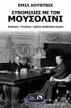 Ο Γερμανοεβραίος Έμιλ Λούντβιχ, διάσημος τότε για τις βιογραφίες του Ναπολέοντα, του Γκαίτε και του Μπίσμαρκ, επιχείρησε να σκιαγραφήσει τον ηγέτη του Φασισμού όχι μέσα από τα γεγονότα, αλλά μέσα από τη φωνή του ίδιου. Αν ο δημοσιογράφος και βιογράφος είναι ο ψυχαναλυτής της Ιστορίας, τότε εδώ ο ψυχαναλυόμενος είναι ο Μπενίτο Μουσολίνι, ο οποίος μιλώντας για τον εαυτό του, μιλά για την ιδέα της εξουσίας. Η συνάντηση των δύο ανδρών έγινε το 1932 στη Ρώμη, όταν ο Μουσολίνι κυβερνούσε ήδη δέκα χρόνια, και η Ευρώπη, ανάμεσα σε κρίση και θαυμασμό, παρατηρούσε τον «άνθρωπο της βούλησης». Ο Λούντβιχ δεν καταγράφει απλώς έναν διάλογο. Συνθέτει ένα πορτραίτο του Ιταλού ηγέτη ως ανθρώπου, διανοούμενου και δρώντος. Η δημοσιογραφία του μετατρέπεται σε ιστορική μαρτυρία και, ταυτόχρονα, σε φιλοσοφικό ντοκουμέντο για τη σχέση πράξης και ιδέας, βούλησης και μοίρας, ανθρώπου και εξουσίας. Μέσα από τις συνομιλίες, ο Μουσολίνι παρουσιάζεται ως άνθρωπος που επιδιώκει να κάνει τη ζωή του «ένα αριστούργημα»· όχι την ευτυχία του, αλλά το έργο του, όπως θα έλεγε ο Νίτσε, το πνεύμα του οποίου διατρέχει όλο το βιβλίο. Επικαλείται από τον Φάουστ του Γκαίτε, τη ρήση «Εν αρχή ην η Πράξις». Για τον Μουσολίνι η ιστορία δεν αποτελεί μια αλληλουχία συμβάντων, αλλά μια σκηνή όπου η θέληση δοκιμάζεται απέναντι στο πεπρωμένο. To έργο αυτό παρουσιάζει την πολυπλοκότητα ενός χαρακτήρα που πλάστηκε μέσα από τη σύγκρουση, την αυτοπεποίθηση και την πίστη ότι η δράση και ο κίνδυνος αποτελούν το μοναδικό τίμημα της ζωής.