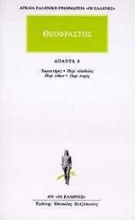 Χαρακτήρες: Τριάντα σύντομα σκιαγραφήματα ανθρώπινων αδυναμιών και λανθασμένης συμπεριφοράς όπως αυτή εκδηλώνεται στην καθημερινή ζωή ή σε ιδιάζουσες περιστάσεις. Ενδεικτικά: Ο κόλακας, ο φλύαρος, ο καυχησιάρης, ο τσιγκούνης, ο ραδιούργος, ο αγροίκος κ.ά.