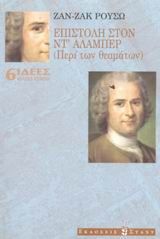 H Επιστολή στον Ντ' Αλαμπέρ αποτελεί θεμελιώδες έργο του Ρουσώ. Εδώ ο μεγάλος στοχαστής εκθέτει τις απόψεις του για τον πολιτισμό, τα ήθη και τα θεάματα. Απόψεις συντηρητικές και συγχρόνως ρηξικέλευθες. Η έντονα επικριτική του στάση έναντι του γαλλικού θεάτρου και των συναφών θεαμάτων της εποχής, η αντιπαράθεση της κοινοτικής συνοχής της Γενεύης στην ανωνυμία και την ηθική χαλαρότητα του Παρισιού, η αναζήτηση μιας αυθεντικής συμμετοχικής πολιτισμικής έκφρασης στη θέση της πολυτέλειας, της επιτήδευσης και της "θεατρικότητας" αποτελούν τους βασικούς άξονες της ρουσωικής προβληματικής. Η επικαιρότητα και η σημασία της σήμερα είναι καταφανής. Το έργο εκδίδεται για πρώτη φορά στην Ελλάδα στο πλαίσιο μιας γενικότερης προσπάθειας των εκδόσεων να φέρουν σε επαφή το ελληνικό κοινό με σημαντικά κείμενα που συγκροτούν την παράδοση του κριτικού στοχασμού.