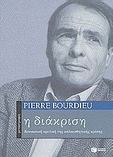 "Η διάκριση", ένα από τα πιο σημαντικά βιβλία του Pierre Bourdieu και της ιστορίας της κοινωνιολογίας, παρουσιάζει τη γενετική ανθρωπολογία της εξουσίας με έμφαση στη συμβολική διάσταση, που χαρακτηρίζει το έργο του συνολικά. Με αφορμή την ανάλυση του γούστου, θεμελιώδους έκφρασης της κοινωνικής αναγκαιότητας, ως εργαλείου και διακυβεύματος των ταξινομητικών αγώνων μέσω των οποίων οι κοινωνικές ομάδες, προσπαθώντας να διατηρήσουν ή να βελτιώσουν τη θέση τους, επιχειρούν να επιβάλουν το βιοτικό τους ύφος ως το μόνο νόμιμο, ο Pierre Bourdieu επαναφέρει τον homo aestheticus στον πυρήνα της κοινωνικής επιστήμης. Aξιοποιώντας έναν τεράστιο όγκο εμπειρικής και κριτικής θεωρητικής εργασίας που εγγίζει τους πλέον ποικίλους τομείς της πρακτικής (μουσική, φωτογραφία, κινηματογράφο, επίσκεψη μουσείων, διασκέδαση, διατροφή, διακόσμηση εσωτερικού χώρου, ντύσιμο, ανάγνωση, σωματική υγιεινή, αθλητισμό, ανατροφή παιδιών, επιλογή φίλων, πολιτική τοποθέτηση) και προσφεύγοντας σε μια καινούρια γλώσσα που επιτρέπει την παράθεση της θεωρητικής κατασκευής και των γεγονότων τα οποία η έρευνα αποκαλύπτει, της γραφικής παράστασης και της φωτογραφίας, της εννοιολογικής ανάλυσης και της συνέντευξης, του μοντέλου και του ντοκουμέντου, ο Pierre Bourdieu επαναδιατυπώνει όλα τα παραδοσιακά ερωτήματα για το ωραίο, για την τέχνη, για το γούστο και για την κουλτούρα, και αναλύει το σύνθετο δεσμό μεταξύ κουλτούρας, εξουσίας και ταυτότητας στις σύγχρονες κοινωνίες. Ο τρόπος επιστημονικής σκέψης που ενεργοποιεί ο Pierre Bourdieu στη "Διάκριση" χαρακτηρίζεται μεθοδολογικά τόσο από τη σχεσιακή προσέγγιση της κοινωνικής ζωής όσο και από τον αναστοχασμό που εγκλείεται στον πυρήνα της θεωρίας του για την κοινωνία και τη γνώση, για τη διανοητική πρακτική και τα εγγενή της όρια.