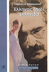 "Μόνο ένας δεξιοτέχνης, όπως ο Ντύρενματ, θα μπορούσε να γράψει για έναν ασήμαντο υπαλληλίσκο, που μέσα σε μία ημέρα γίνεται πλούσιος και αποκτά κοινωνική υπόληψη, χωρίς να τον μετατρέψει σε μια αδέξια κωμική φιγούρα. Ο Άρνολφ Αρχίλοχος, ο κεντρικός ήρωας του "Έλληνας ζητεί Ελληνίδα" είναι ένας μεσήλικας, παχουλός βοηθός λογιστή που η ζωή του μοιράζεται ανάμεσα στη δουλειά του στο Τμήμα Εμβρυουλκών του εργοστασίου μηχανών Πτιτ-Πεϊζάν Α.Ε. και στην αφοσίωσή του στους "πρωτονεοπρεσβυτερανούς", "μια λίγο περίεργη ίσως και ασαφή αίρεση, εισαγμένη από την Αμερική". Η περίφημη ειρωνεία του Ντύρενματ είναι εμφανής παντού είτε όταν ο επίσκοπος βεβαιώνει ότι μέσα σε αυτήν την εποχή του μποεμισμού "μια ευπρεπής μόδα και ο χριστιανισμός δεν αποκλείουν σε καμιά περίπτωση το ένα ή το άλλο", είτε όταν ο βιομήχανος όπλων ανακαλύπτει με χαρά ότι η εταιρεία του παράγει και εμβρυουλκούς: "Χρειάζεται να υπάρχει μια κάποια ισορροπία προϊόντων, έστω και αν δεν είναι όλα προσοδοφόρα".