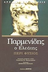 Το βιβλίο "Παρμενίδης ο Ελεάτης" είναι η σύνθεση των ερευνών του συγγραφέως επί τριάντα σχεδόν έτη στην Ελλάδα και στη Γαλλία (Παρίσι, Πανεπιστήμιον Paris-I Pantheon-Sorbonne 1974-1976) υπό την καθοδήγηση του Maurice de Gandillac, καθηγητού της Φιλοσοφίας στη Σορβόνη (1946-1977), παλαιότερα δε (1943-46) του Πανεπιστημίου της Λιλλ) και εκ των επιφανεστέρων Γάλλων φιλοσόφων και ιστορικών της Φιλοσοφίας της τελευταίας εκατονταετίας, και ίσως όχι μόνον· το πλήρες προϊόν των ερευνών του συγγραφέως επί του θέματος "Παρμενίδης" και οι οποίες έρευνες, μελέτες, άρθρα και βιβλία δίδουν σε μία αναδημιουργική σύνθεση το παρόν πόνημα. [...]