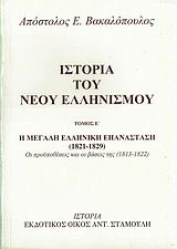 Συνεχίζοντας με μόνες τις δυνάμεις μου την προσπάθεια που έχω αναλάβει εδώ και τέσσερες σχεδόν δεκαετίες και αναλύοντας μέσα στο κελί της εργασίας μου, της μοναξιάς και της συλλογής, τα στοιχεία της συμπεριφοράς των Νεοελλήνων και της δομής της κοινωνίας τους, τα πιο σημαντικά στοιχεία για την αυτογνωσία μας, παραδίδω τώρα στο κοινό τον Ε΄ τόμο της "Ιστορίας του Νέου Ελληνισμού" που πραγματεύεται τα χρόνια 1813 ως τα 1822 της Ελληνικής Επαναστάσεως, που έχει μελετηθεί περισσότερο από κάθε άλλη περίοδο της νεοελληνικής Ιστορίας, χωρίς όμως ν' αναστηθεί σε αντάξιο προς τη σημασία της συνθετικό έργο με την ζεστή παρουσία των ανθρώπων της, του κύριου αντικειμένου της Ιστορίας. Η απουσία τους μάλιστα είναι το χαρακτηριστικό σημάδι των περισσότερων ιστορικών έργων και της προχειρότητας, με την οποία αυτά γράφονται.