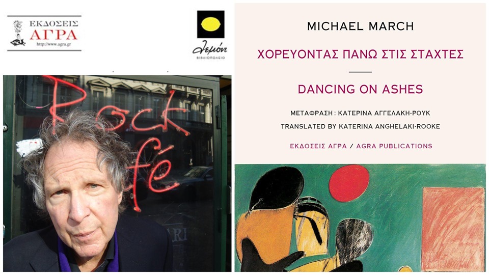Συνάντηση με τον Michael March στην μικρή αυλή του βιβλιοπωλείου την Τρίτη 8.00 μ.μ με αφορμή την κυκλοφορία της ποιητικής συλλογής "χορεύοντας πάνω στις στάχτες"