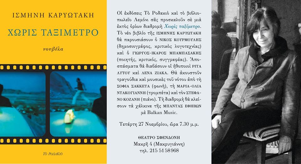 Πρόσκληση στη διαδρομή "Χωρίς ταξίμετρο" της Ισμήνης Καρυωτάκη