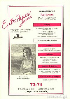Εμβόλιμον, Τεύχος 73 74, Φθινόπωρο 2014 Χειμώνας 2015