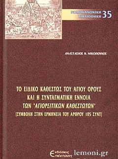Το ειδικό καθεστώς του Αγίου Όρους και η συνταγματική έννοια των "Αγιορειτικών καθεστώτων"
