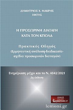 Πρακτικός οδηγός: (Ερμηνευτική ανάλυση - διαδικασία, σχέδια προσωρινών διαταγών). Ενημέρωση μέχρι και το Ν. 4842/2021